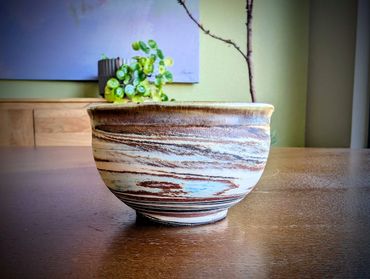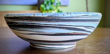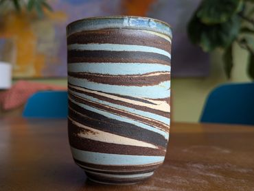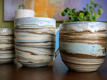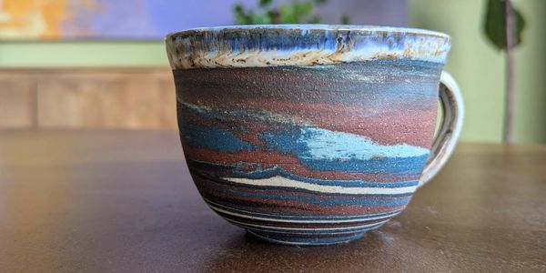 I’m especially drawn to neriage because it echoes the stone of the Sonoran Desert. The marbled, striated textures in the clay remind me of the cliff faces around my home here, their layers carved by time, sun, and wind. Working this way lets me bring a little of that landscape into each piece—its movement, its depth, its unexpected surprises—all captured in clay and color.