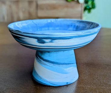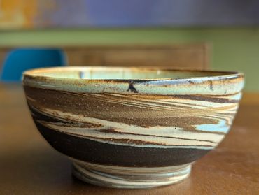 This way of working isn’t new. It’s called neriage, a centuries-old technique with roots in Japanese ceramics, where differently colored clays are layered, marbled, and cut so the pattern runs all the way through the piece. I love that the color isn’t just on the surface—it’s built into the clay itself. Even though the technique has been around for a long time, every piece still feels fresh, unpre